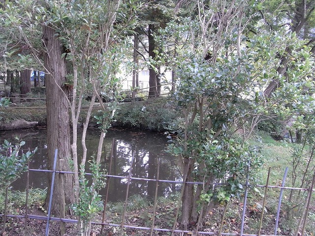 右手には何やら池が