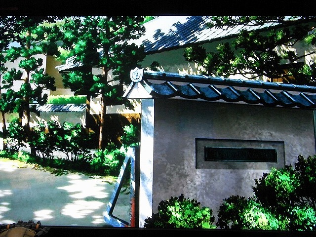 画面向かって右側が宝物館、左側に公園、手前に真田邸
