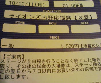ちなみにこのチケットを発券したのが試合開始1時間前