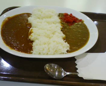 ちなみに左が赤いハヤシで右が緑のカレーです