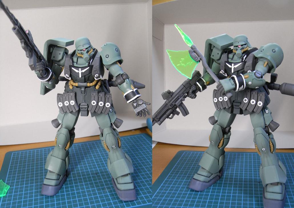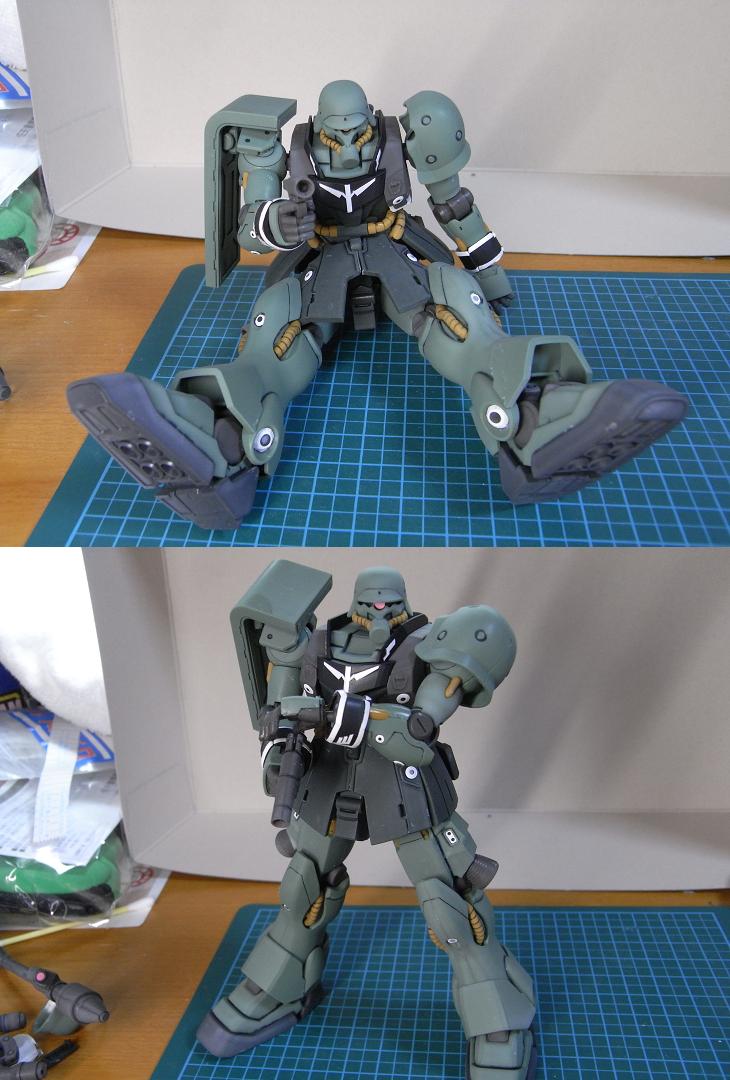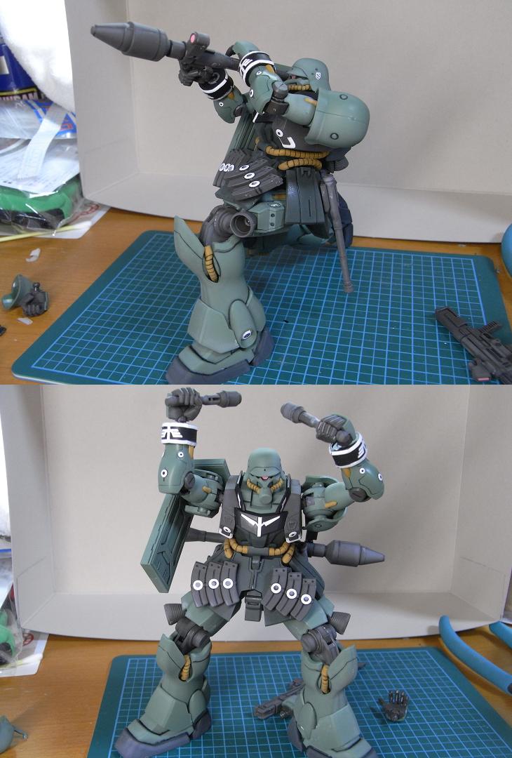 ガンダム系と違ってザク系はツヤ消し吹くとグッと良くなるので久しぶりに吹いた