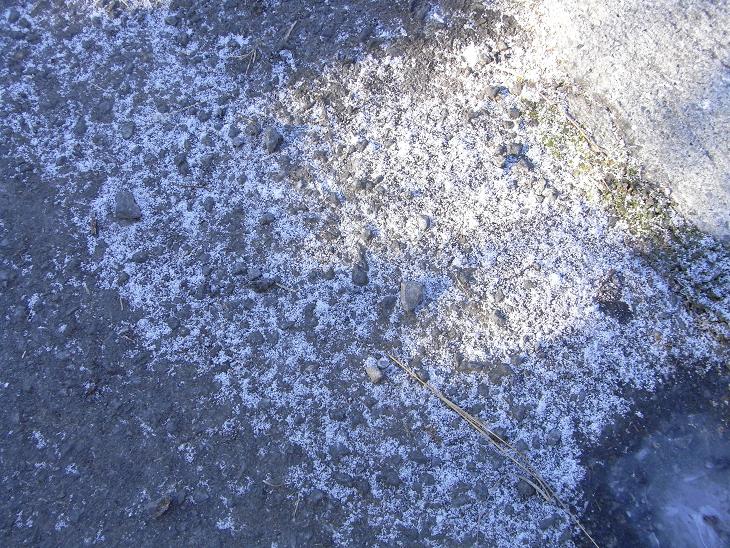 日陰部分にうっすらと積もってた