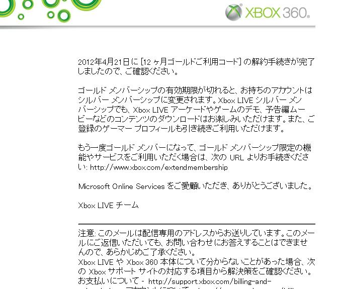 今年もXbox360の12ヶ月ゴールド更新時期がやってまいりました