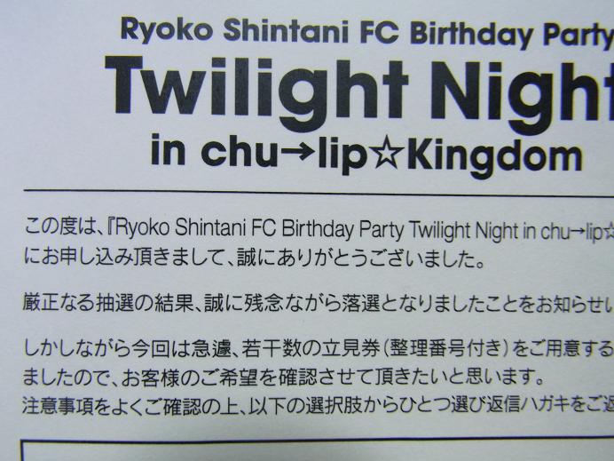 俺なんかまだいいけど、このイベント告知されてからFC会員に入会して落ちた人とか居るんだろうな…