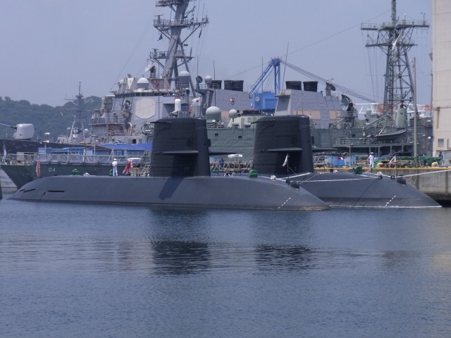 日本の舟なのに米軍の敷地内に停泊してる謎の潜水艦。