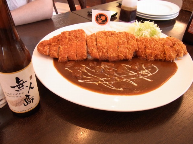 30cmのカツに3人前のカレーをみんなで食べる食べる。