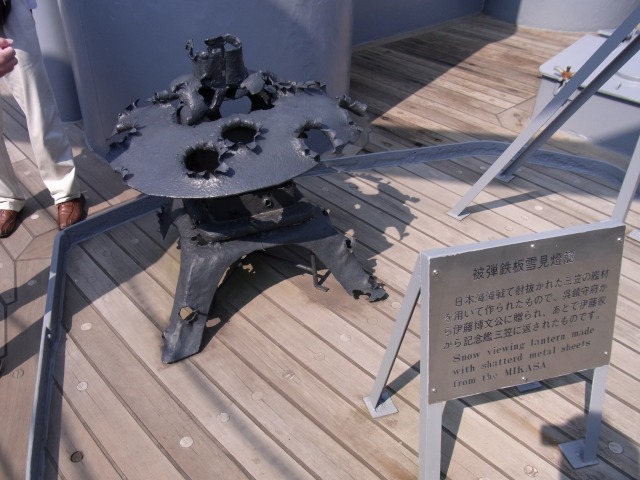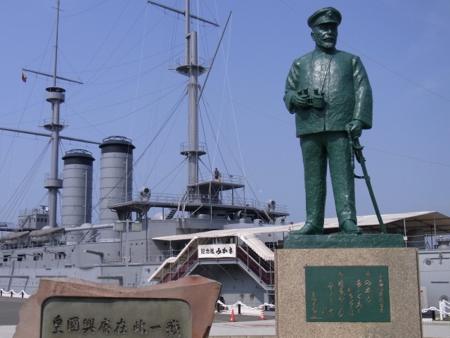 でーんと三笠があって東郷指令の等身大らしい像